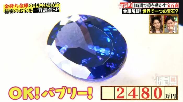 中でも、タンザナイトの64カラットの宝石(2480万円)は、映画「タイタニック」で使用されたというタンザナイトに引けを取らないサイズだという。