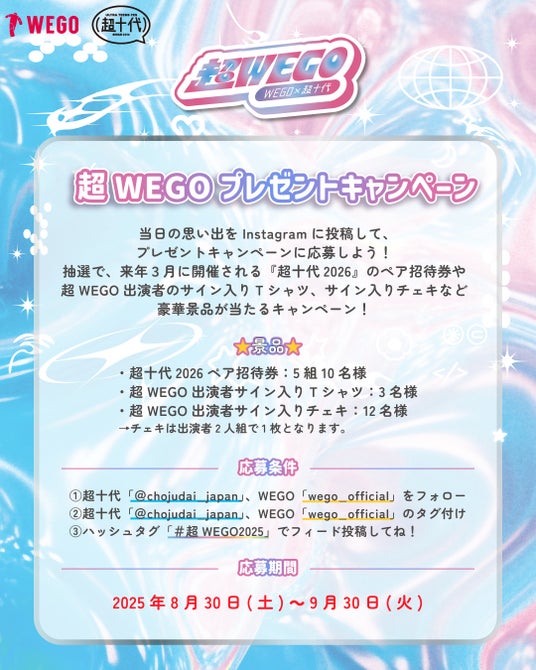 体験型ティーンズフェス【超十代】とのコラボレーションイベント【超WEGO】を2025年8月30日(土)WEGO1.3.5... 原宿店にて開催致します。