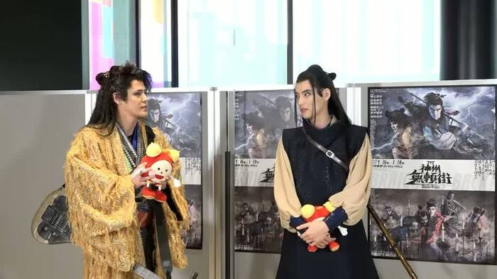 劇団☆新感線42周年興行・春公演、いのうえ歌舞伎「神州無頼街(しんしゅうぶらいがい)」。4月26日より東京公演が開幕することを記念して、福士蒼汰さん、宮野真守さんが取材会に登壇。イベント後に、『めざましテレビ』の鈴木唯フジテレビアナウンサーがインタビューしました。