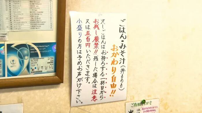 また、お店にはご飯を残した場合のペナルティとして「注意」または「500円」というルールが。