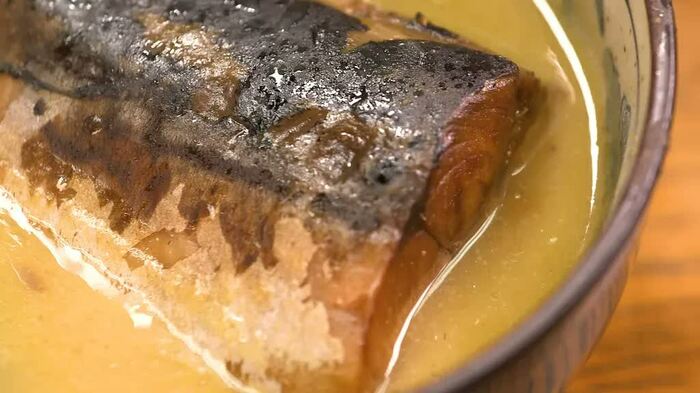 「魚力」の看板メニューは、サバの味噌煮。砂糖と白味噌のみで味付けされ、長時間煮たサバは骨まで全部食べられます。