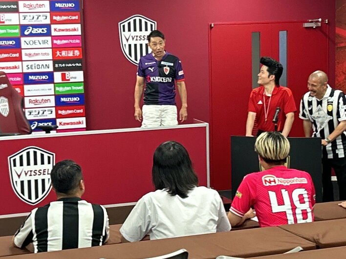 近藤:全然よ!俺、いらなかったよ。今日も、3たたきくらいでメイク終わったからね、出番直前にパンパンパンで終わり。ノエスタ(ヴィッセル神戸のホームグラウンド・ノエビアスタジアム神戸)の中を紹介してもらって、OBとしてもありがたいね。こういうのを見た子が、ヴィッセル神戸、いいなってなるから。