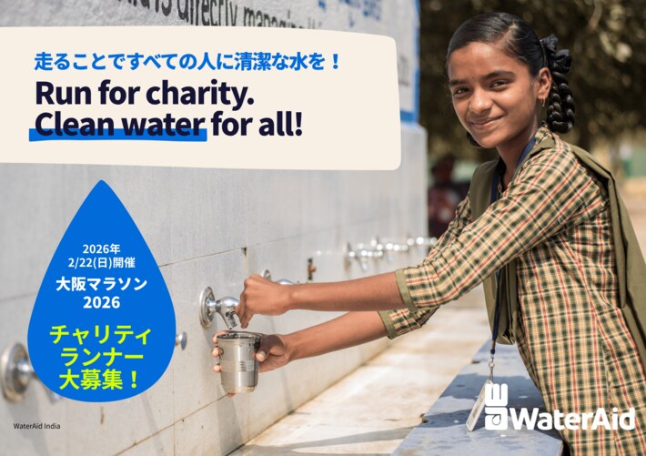 あなたの走りで、世界の人々に清潔な水とトイレを届けませんか?水・衛生専門の国際NGOウォーターエイドは、2026年2月22日(日)に開催される大阪マラソン2026のチャリティパートナーです。
