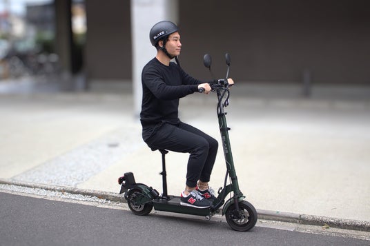 16歳以上免許不要の車両区分「特定小型原動機付自転車(特定原付)」に対応する椅子付き電動キックボードです。