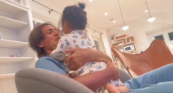 現在、2歳5ヵ月となったぷくぷくちゃんは、パパ・本並健治さんのことが大好きで、ソファに座る本並さんにまたがり、おててで本並さんの頬をむぎゅ~と触る姿や…