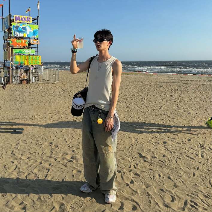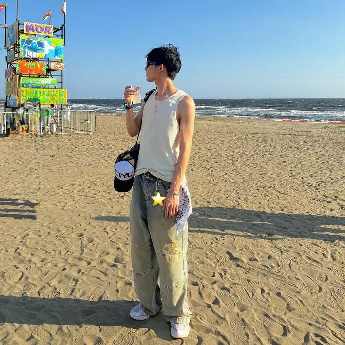 サングラス姿のNOAさんは、白のタンクトップにワイドデニムを合わせたコーデを披露しています。スラッと伸びた腕には血管が浮かび上がっていて、なんともセクシーです!