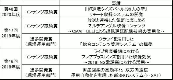 映像情報メディア学会・技術振興賞 フジテレビ受賞歴(2018年度以降)