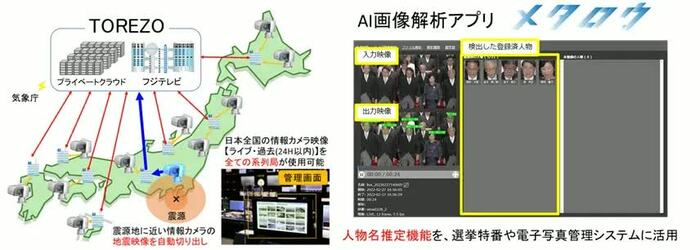 「TOREZO」では、全国の情報カメラの映像を、系列局ごとに収録するだけでなく、フジテレビのサーバーと災害に強いクラウド上にも一括収録。