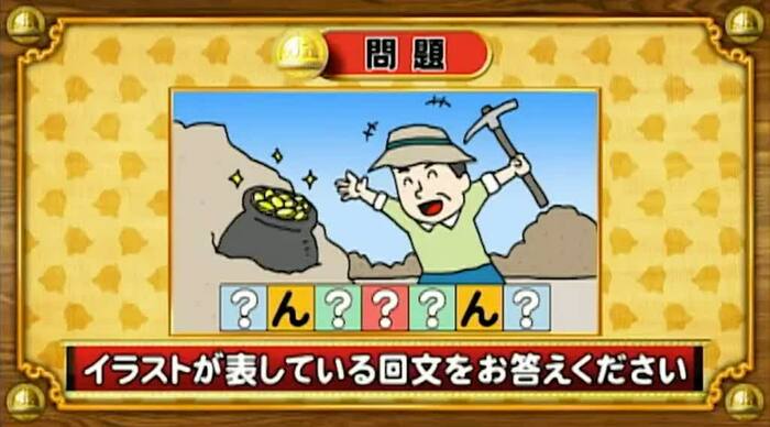 最初は、イラスト回文の問題。次のイラストが表している回文を答えてください。