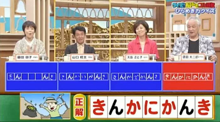 今回の解答者は、女優・藤田朋子さん(56)、俳優・山口粧太さん(56)、女優・大島さと子さん(61)、俳優・原田大二郎さん(77)の4名です。