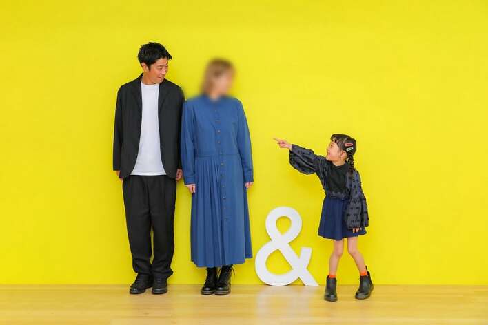 “&マーク”のオブジェを挟んであいさんと尾形さん、そして反対側にさくらちゃんが立ち、お互いに顔を見合わせたユーモアあふれるショットなど、家族3人仲むつまじい様子が伝わる写真を複数披露していました。