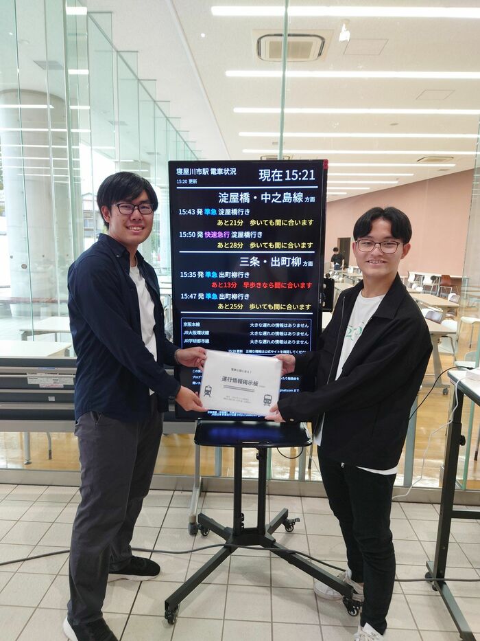 その運行掲示板がこちら!最寄り駅の京阪電車「寝屋川市駅」運行状況が、大学にいながらにして一目で確認できるようになっています。
