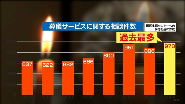 2024年度、国民生活センターに寄せられた葬儀料金に関する相談件数は978件と、過去最多を更新。