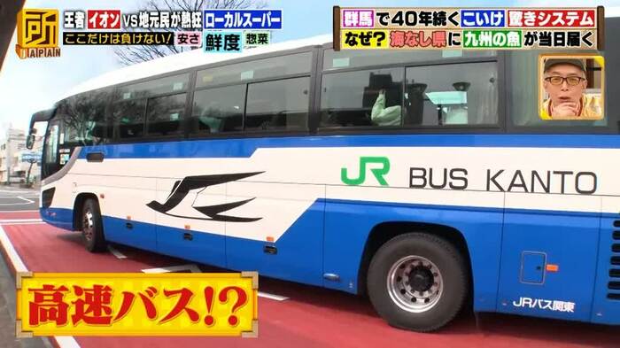 羽田から新宿のバスターミナルへ届け、11時には高速バスの荷台に積み込み、14時には群馬のスーパーに到着します。