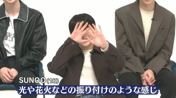 HEESEUNG:そう「見えない」!あまりにも眩しくて見えないという感じです。こんな感じで!小山内アナウンサーも1回やってみてください!