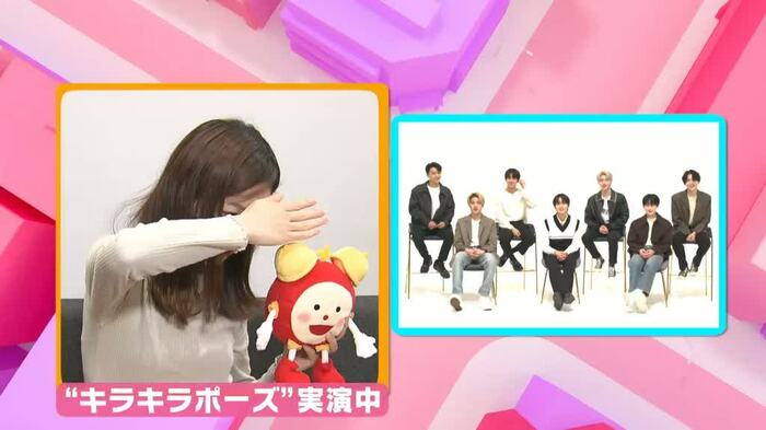 小山内アナウンサーもキラキラポーズをしてほしいと逆無茶ぶりされてしまいましたが、顔を隠すポーズをまねするとメンバーからは温かい拍手が。