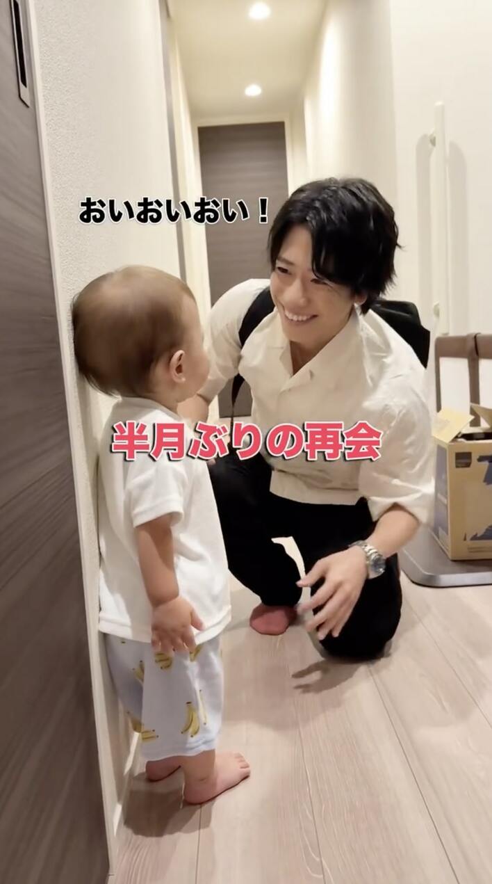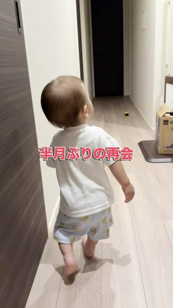 今回の動画では「息子が帰省から戻ってきました。」とつづり、お盆で妻の実家に行っていた息子との、半月ぶりの再会を公開しました。