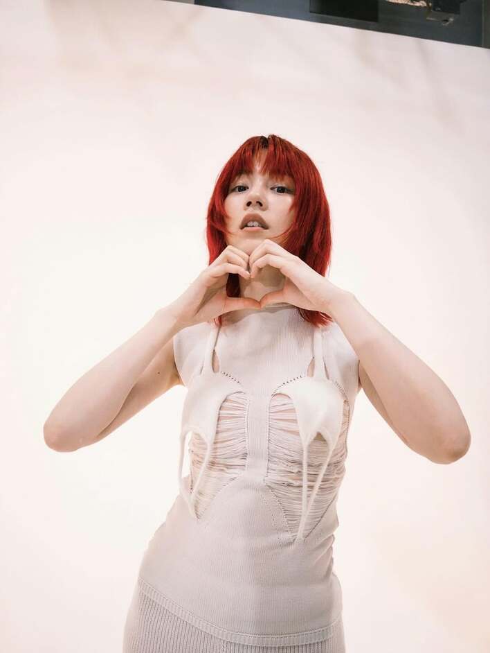 のん 赤髪×ホワイトニットドレス「完全にジョヴォヴィッチ」