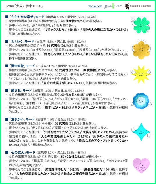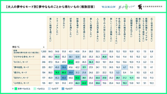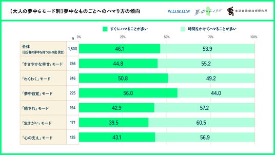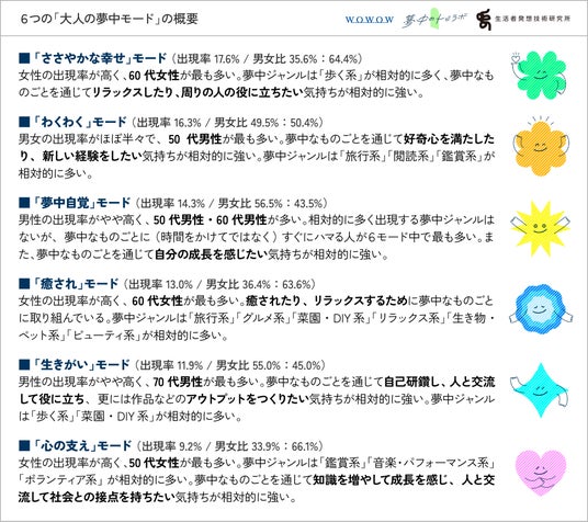 好きの感じ方によって夢中のあり方が異なる6つの「大人の夢中モード」が存在