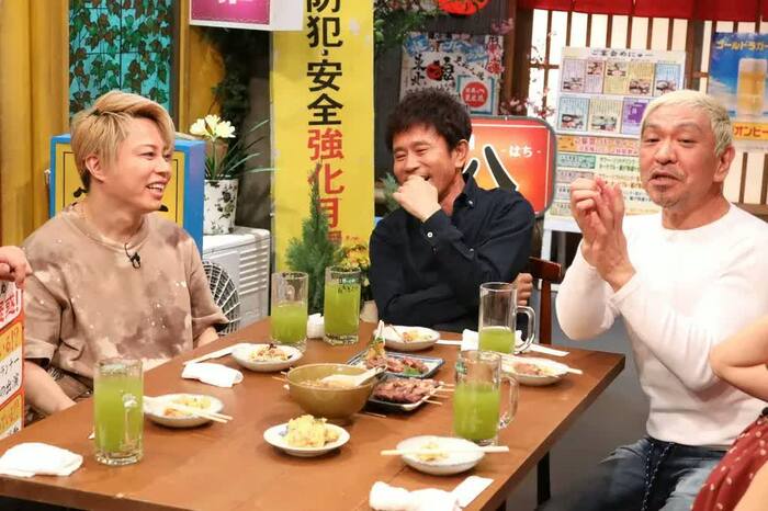 それを見た西川が「もう飽きてるやん!」とツッコミを入れるも、浜田と松本は目も合わせずにおつまみをもぐもぐ、お酒をゴクゴク。