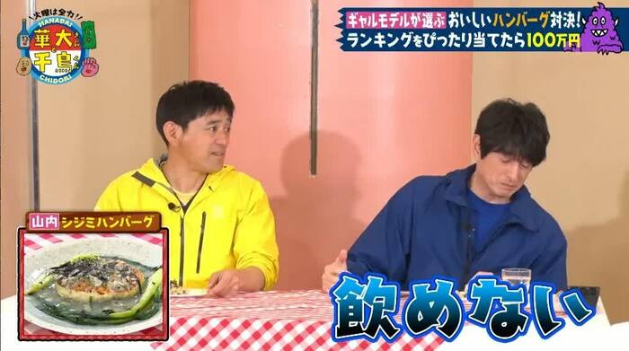 試食した華大千鳥メンバーも「全然おいしくないやん」(濱家)、「なんか苦ない?」(大悟)、「なんの味もせえへん」(ノブ)、「飲めない!あ~、まずかった~」(大吉)と酷評しました。