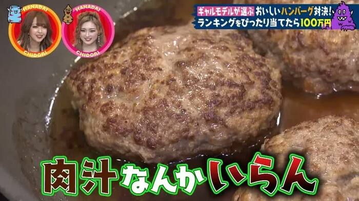 博多華丸さん、博多大吉さん、千鳥(大悟さん、ノブさん)、かまいたち(山内健司さん、濱家隆一さん)がオリジナルハンバーグを作り、2人がおいしかった順にランキング。