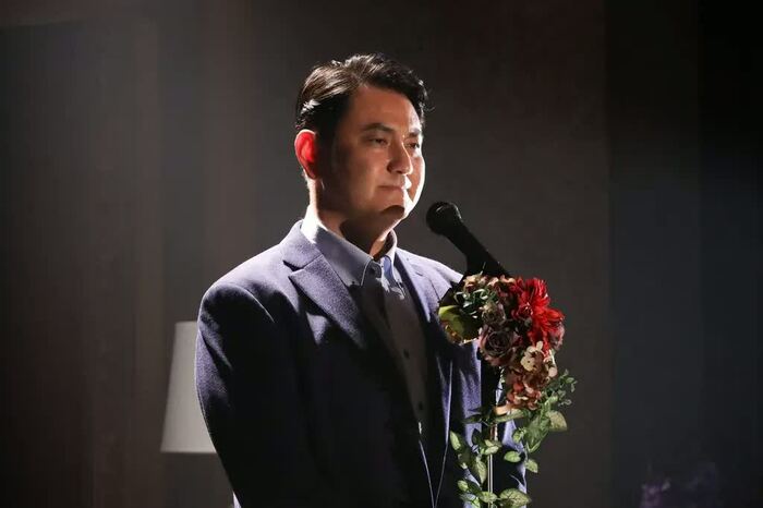 まず、大学時代に出会い、一緒に会社を立ち上げて苦労をともにしてきた共同代表の庄司健介(髙橋洋)への感謝の言葉を口にする真梨邑。次の瞬間、会場の後方で突然大きな音が響く。明かりをつけると、そこにはM&Aの大口客だった投資家の久野(芝崎昇)という男が倒れて死んでいた。