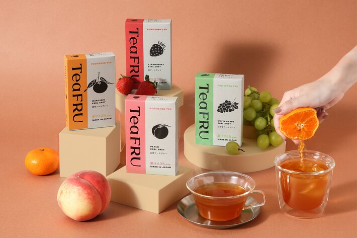 TeaFRUはそれぞれ特徴の異なる「白桃アールグレイ」「白葡萄アールグレイ」「蜜柑アールグレイ」「苺アールグレイ」の4種でスタートします。