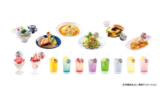 キャラクターをイメージした限定メニューを店舗で販売します。