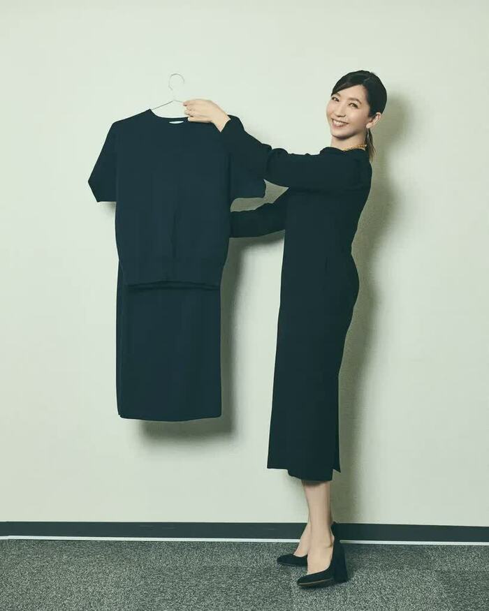 「HYKE(ハイク)」というブランドの、ネイビーのセットアップです。もともとシンプルで長く着られる、スタンダードなものが好きで。私の好みが凝縮された一着です(笑)。