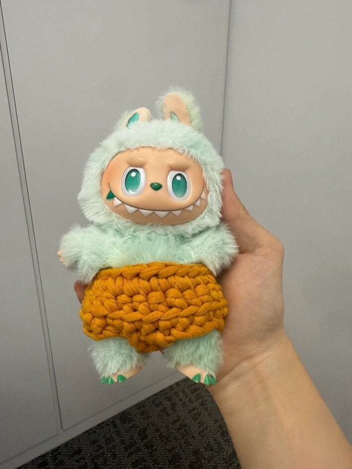 その手には、今 世界的にブームを巻き起こしているマスコット人形が握られています。