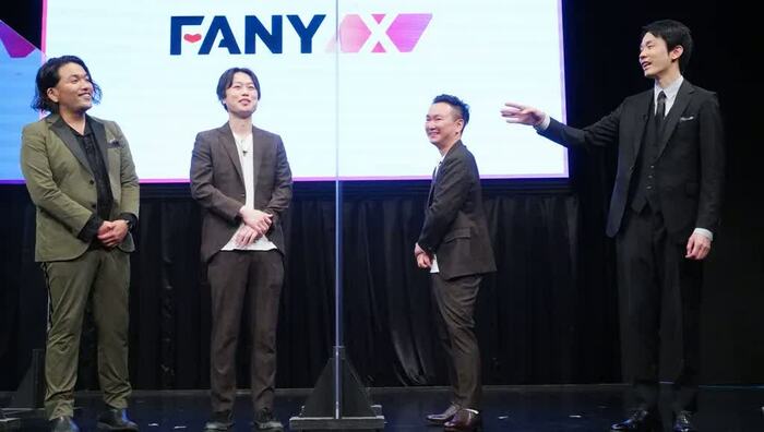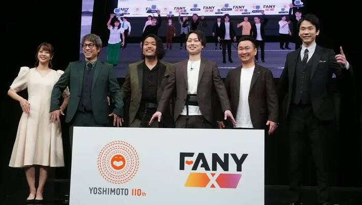 5月13日、吉本興業が新たにスタートする新事業「FANY X」の発表会が行われ、MCの田村淳さん(ロンドンブーツ1号2号)、久代萌美アナウンサー、ゲストにかまいたち(山内健司さん、濱家隆一さん)、見取り図(盛山晋太郎さん、リリーさん)が登壇しました。