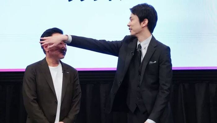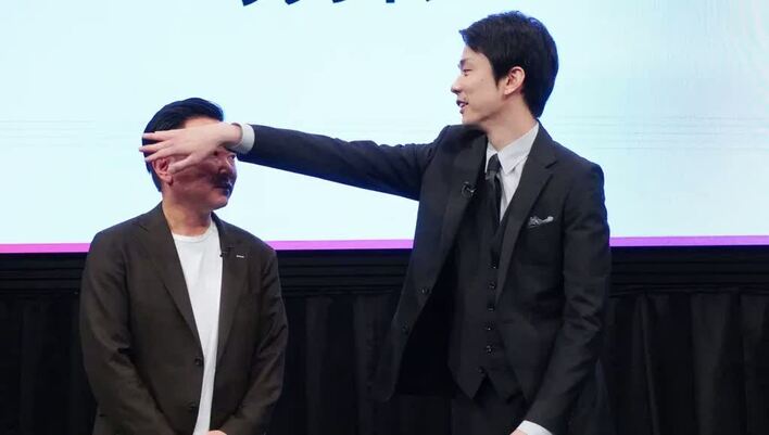 スクリーンにかまいたちのアバターが登場すると、山内さんは「なんか剃り込みみたいなの入って、ハゲてないですか?僕あんなハゲてないですよ、ちょっと後で増毛しといてください」と指摘しました。