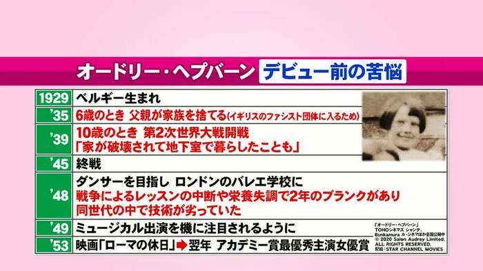 イギリスで生まれたヘプバーンさんは、幼少期に父が失踪。その後、オランダで戦争を経験するなど苦労を重ねました。