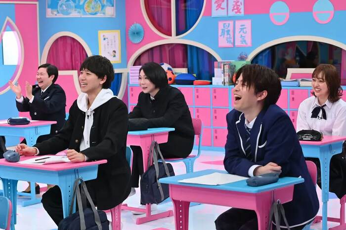 小中学校レベルの国語、社会、英語、音楽、家庭科…計5科目の一斉テストを実施。タナカ先生(田中卓志さん)が振るう“愛のムチ”が、生徒たちを爆笑まみれの教室へといざないます。