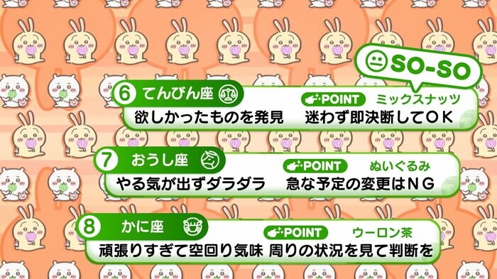 『めざましテレビ』で放送中の「ちいかわ占い」 テレビ放送がない日はお休みで、月~土:朝7時以降に更新予定です。