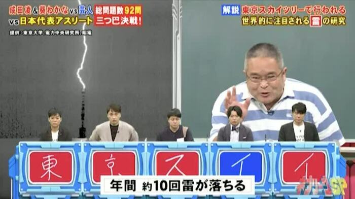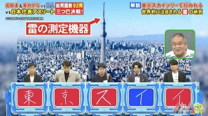 「東京スカイツリー」の名前を答える問題では、地理担当の村瀬哲史先生が東京スカイツリーで行われている研究の内容について教えてくれました。