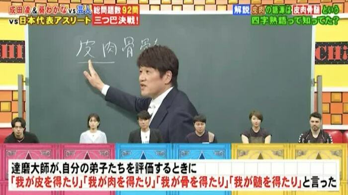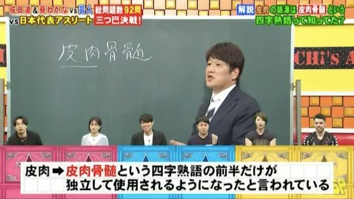 類語から推測して「皮肉」という言葉を答える問題では、林修先生が言葉の語源を解説してくれました。