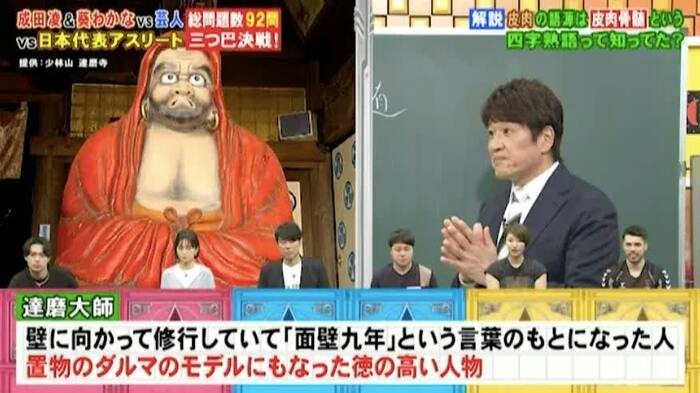 「皮肉」は、もともとは「皮肉骨髄」という四字熟語。この言葉は、壁に向かい修行を重ねるその姿が「面壁九年」という言葉のもとになり、置物のダルマのモデルにもなった「達磨大師」に由来しています。