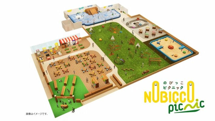 「のびっこピクニック」は、「走って、あそんで、寝ころんで のびのび屋内ピクニック」をコンセプトに、広大な人工芝の「ピクニックエリア」でレジャーシートを広げ、まるで“公園ピクニック”のような体験ができる新感覚の屋内型プレイグラウンドです。時間を気にせず一日中遊べるリーズナブルな料金設定で、ご家族皆さまが、のびのびと遊べる空間を提供いたします。また、子育て世代のニーズに合わせ、「飲食物の持ち込みOK」、「保護者さまの途中交代OK」、「再入場OK」といったサービスも充実。また0歳のお子さまは入場無料(※)です。広々とした飲食エリアも完備し、付き添いの保護者さまも快適にお過ごしいただけます。※当社無料アプリ「トットット」会員さま限定●天候を気にせず、屋内で叶う公園遊び!一日中夢中になれる遊びのコンテンツ