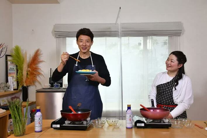恒例となった時間との戦い「ノーカット!万才」。フードコーディネーターの池澤和代さんに教えてもらいながら、松岡さんが“2分半ノーカット”で調理と実食までをこなします。