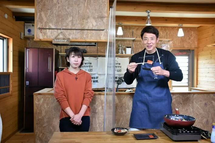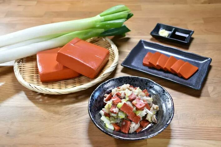 「すごいさっぱりしていておいしい」と、赤こんにゃくの刺身を味わう松岡さんに、「簡単にできる“赤こん”料理を紹介します」と坂野さんが次に教えてくれたのは、この地域で獲れる「信長ねぎ(安土信長葱)」というブランドねぎを使用した家庭料理。