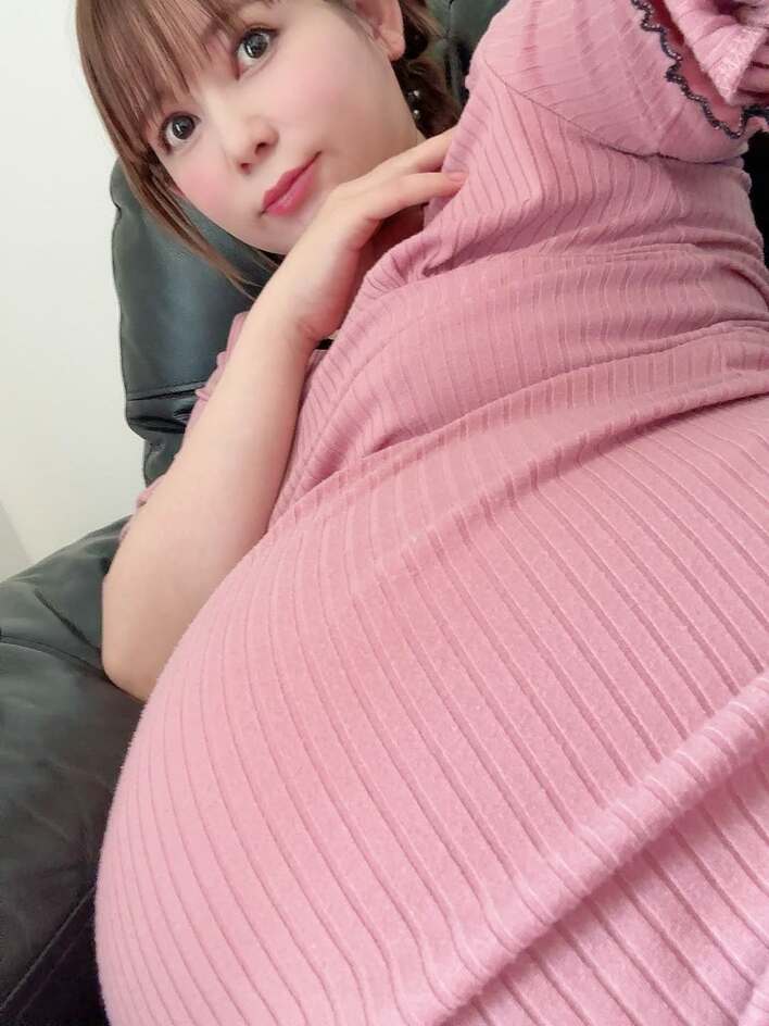 上からのアングル写真でも、大きく膨らんだお腹から目が離せません。