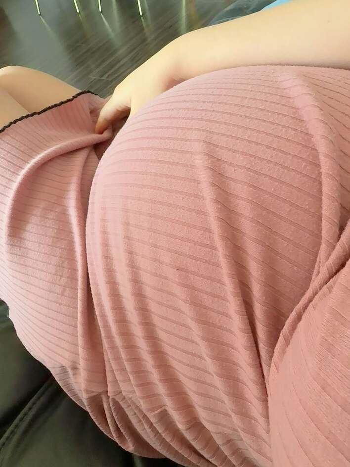 お腹の大きさで洋服がピンッ!と張っていて、先ほどの写真よりも、さらに大きく膨らんでいるように見えます。