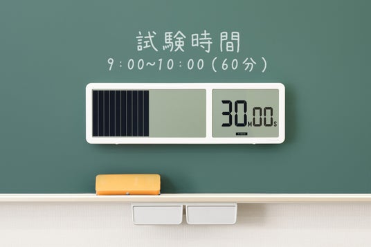 「ビジュアルバータイマー 大型」は、従来品の特長である“横方向の目盛りで残り時間が一目で分かる”機能はそのままに、本体サイズを従来品の約20倍に拡大したことで、視認性を大幅に高めたモデルです。試験会場や教室、会議室など、複数人で時間を共有するシーンに最適です。