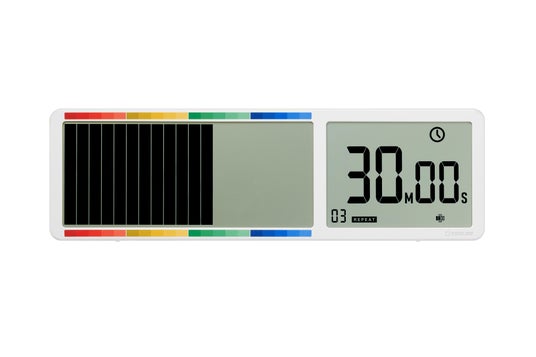 時間のカウントダウンとカウントアップが可能で、数字だけでなく目盛りによって残り時間を視覚的に把握できます。