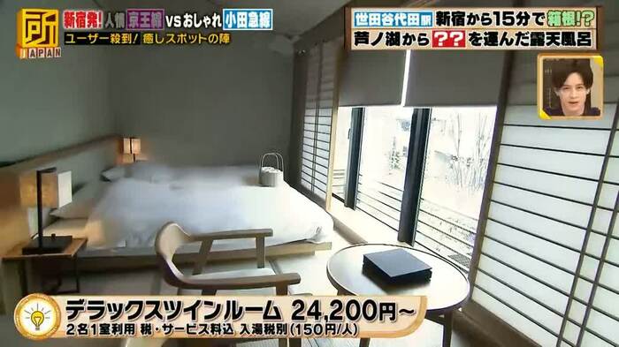 さらに、世田谷の農家から仕入れた新鮮な野菜を使った本格割烹や、明治時代に茶業が盛んだった世田谷代田の歴史を背景に厳選した、高級日本茶のアメニティまで用意されており、癒しのひとときを過ごすことができます。