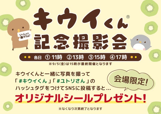 キウイくんと記念撮影してオリジナルシールプレゼント!