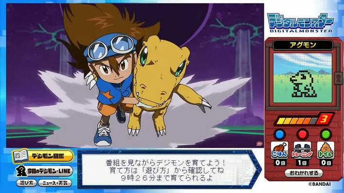 さらに、育成していく過程で入手できたデジモンはデータ放送上のデジモン図鑑にアーカイブされ、進化したタイミングで「デジモン図鑑」に表示されるので、テレビアニメの放送に加え、デジモンを集める楽しみも味わえるという。このような放送と連動した育成ゲームはフジテレビ史上では初の試みとなる。
