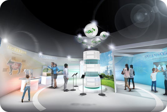 ■ 未来の地球は変えられる!~技術の力で解決しよう(温暖化や食料問題)~「過去の地球」と「未来の地球」の2つのゾーンで、地球に対する現状の危機感と未来への期待感を体験・体感を通じて学ぶ展示です。